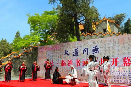 中華龍都網(wǎng)訊(周口報(bào)業(yè)全媒體記者 李瑞才/文 通訊員 陳興有/圖)5月4日上午,“大道同源”——鹿邑·臨洮書畫聯(lián)展活動(dòng)在鹿邑縣明道宮景區(qū)開幕。此次活動(dòng)由甘肅省臨洮縣人民政府和鹿邑縣人民政府共同舉辦,精選兩地137位書畫藝術(shù)家140余幅作品在鹿邑展出。鹿邑縣領(lǐng)導(dǎo)武衛(wèi)東、劉銀、宋克言、王玉超和臨洮縣委常委、宣傳部長郭志萍等出席開幕式。
