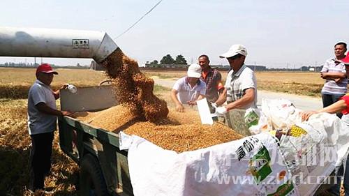 6月1日,張莊鄉(xiāng)劉村村民在村干部指導(dǎo)幫助下,趁晴好天氣搶收小麥。
