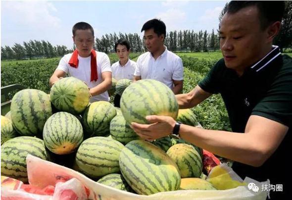為了保證西瓜的品質(zhì),讓市民吃的放心,同時也是為扶溝西瓜揚(yáng)名,宋鐵托帶著員工親自到瓜田收購西瓜。
