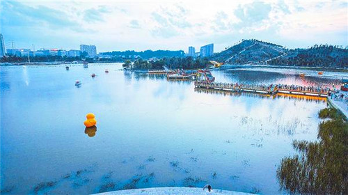 時(shí)下,漫步在鹿邑縣上清湖公園,亭臺(tái)樓榭處處皆景;朝暉、晚霞,倒映水中;夜幕下的景色更是美輪美奐。據(jù)了解,上清湖水域面積達(dá)到16.7公頃,建有親水平臺(tái)、游船碼頭、兒童沙灘、湖心島、音樂噴泉、景觀橋、觀水亭、假山等景點(diǎn)。踏著青石臺(tái)階或沿著假山坡道來到山頂或登臨十多米高的觀水亭,可以俯瞰整個(gè)湖區(qū),繞湖車道、步行園道、健康游道像三條紅飄帶圍繞湖區(qū),東北角的正清林里修竹清風(fēng),魅影婆娑,加之周邊林立高樓倒映水中,湖光山色美不勝收,令人流連忘返。圖①②③④為上清湖風(fēng)景。記者 李瑞才 通訊員 胡洪濤 文/圖