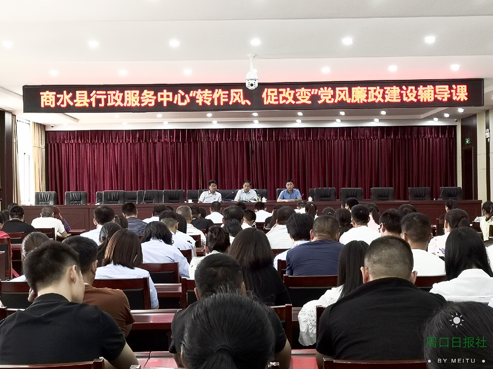 王緯織結合十九大精神,從“全面從嚴治黨”切入,深刻指出了“全面從嚴治黨”的重大意義和深刻內涵,從商水縣行政服務中心成立的目的和意義,講政治、必須旗幟鮮明,轉作風、必須務實重干,勤為民、必須不忘初心,保本色、必須廉潔從政等五個方面深刻闡述了“轉作風、促改變”的重大意義。要求中心全體黨員干部要結合工作實際,認真學習領會,增強貫徹落實的自覺性,切實推動中心“轉作風、促改變”活動取得實效。