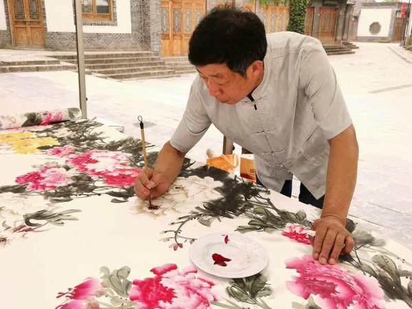 隨著技法日漸純熟,兄弟倆抱著試試看的心態(tài),到白馬寺景區(qū)賣畫。沒(méi)想到,游客對(duì)牡丹畫愛(ài)不釋手。漸漸地,本地、外地的商家慕名而來(lái)找他們定畫,兄弟倆的牡丹畫聲名鵲起。