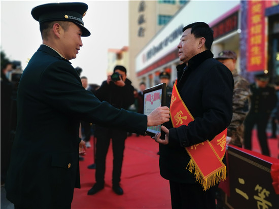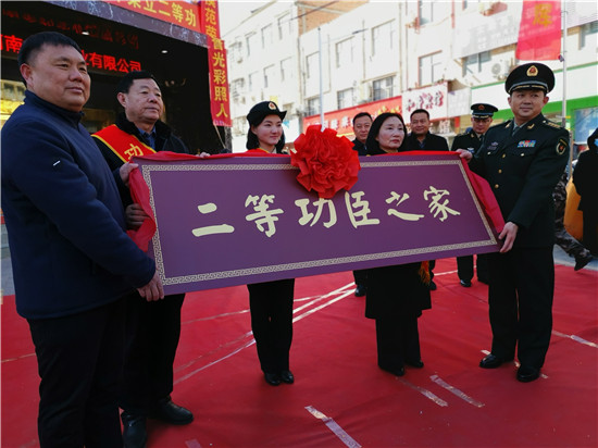 “這么冷的天沒(méi)想到軍地領(lǐng)導(dǎo)親自上門送喜報(bào),還定制了功臣之家的光榮牌匾……”看到送喜報(bào)“隊(duì)伍”的到來(lái),趙金豹激動(dòng)地連說(shuō)到。