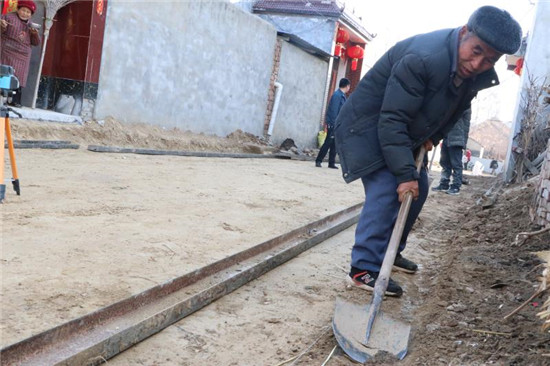 在宋河鎮(zhèn)劉橋村,支部書記張殿魁正在帶領(lǐng)村民平整路面。“我們村的主街道幾年前就通了水泥路,但是部分小巷子因經(jīng)費(fèi)不足一直沒有修通?!睆埖羁f,年初鎮(zhèn)黨委組織召開全鎮(zhèn)在外返鄉(xiāng)人士優(yōu)秀代表座談會,得到了在外鄉(xiāng)賢的積極支持,部分鄉(xiāng)賢捐款,帶動村內(nèi)群眾籌集費(fèi)用,現(xiàn)在水泥路即將覆蓋全村大街小巷。