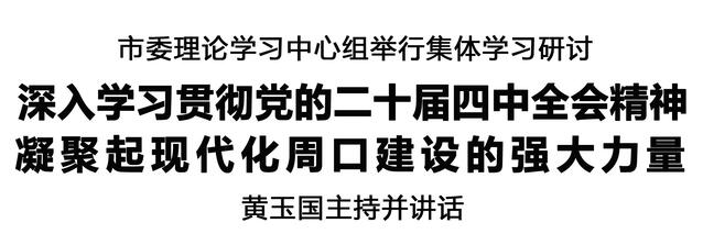 本報(bào)訊 (記者 王艷) 11月8日,市委理論學(xué)習(xí)中心組舉行集體學(xué)習(xí)研討,深入學(xué)習(xí)貫徹黨的二十屆四中全會精神,示范帶動(dòng)全市各級黨組織和廣大黨員干部興起學(xué)習(xí)貫徹?zé)岢保燮瓞F(xiàn)代化周口建設(shè)的強(qiáng)大力量。市委書記黃玉國主持并講話。