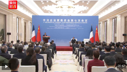 12月4日中午,國家主席習(xí)近平在北京同法國總統(tǒng)馬克龍共同出席中法企業(yè)家委員會第七次會議閉幕式并致辭。