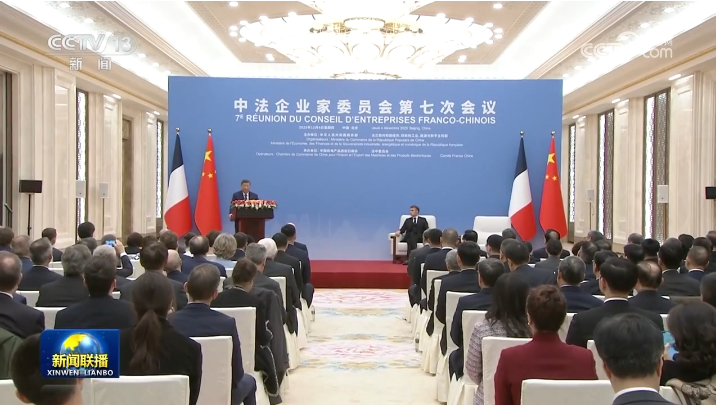 12月4日中午,國家主席習(xí)近平在北京同法國總統(tǒng)馬克龍共同出席中法企業(yè)家委員會第七次會議閉幕式并致辭。