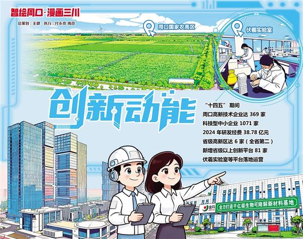 “十四五”期間,周口強化創(chuàng)新驅動,發(fā)展支撐力顯著增強。高新技術企業(yè)達369家(較“十三五”末增2.2 倍),科技型中小企業(yè)1071 家(增5.6倍)。2024年研發(fā)經(jīng)費38.78億元,較“十三五”末增135%,占GDP比重 1.07%。