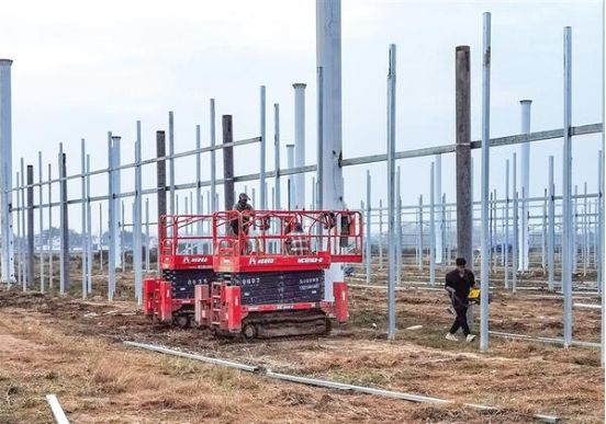 11月26日,淮陽區(qū)四通鎮(zhèn)時莊村的新能源高效現(xiàn)代農業(yè)產(chǎn)業(yè)園建設現(xiàn)場,工人們正緊張施工。